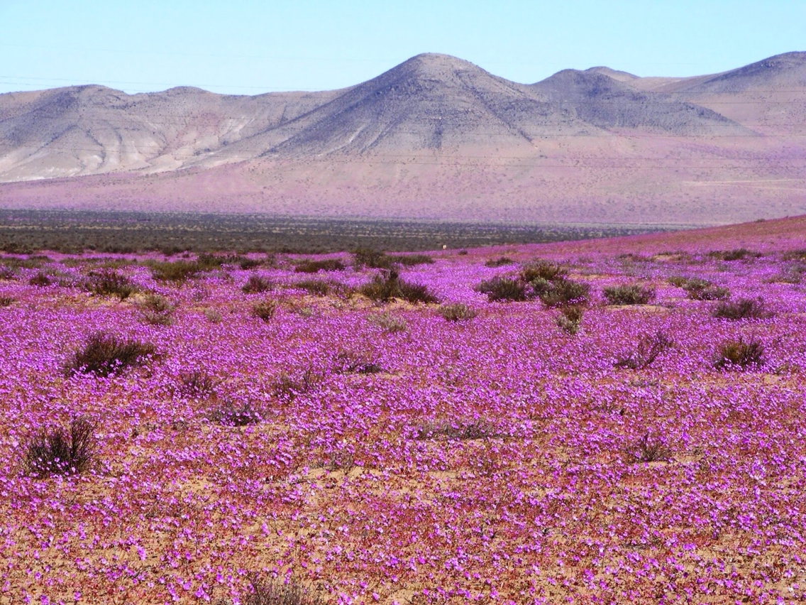 Con la cercanía de la primavera en el hemisferio sur arriba también el llamado desierto florido, fenómeno único que se produce de vez en cuando en el desierto chileno de Atacama, uno de los más áridos del mundo.