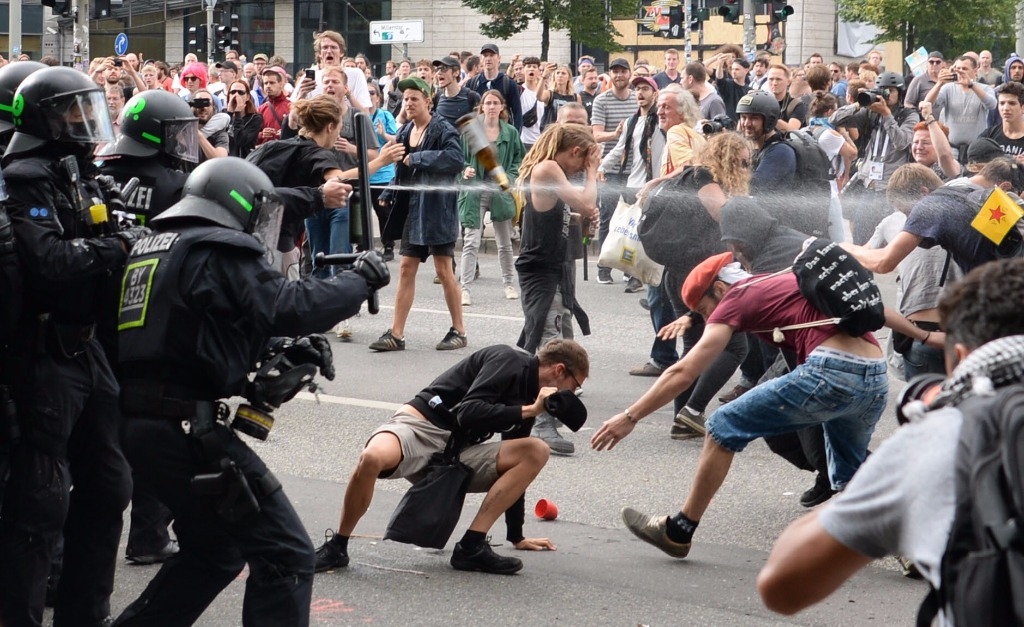 La policía informó que los disturbios fueron extremadamente violentos en las primeras horas del sábado en el barrio de Schanzenviertel, a pocos cientos de metros de la sede de la cumbre. Cientos de agentes entraron en los edificios para detener a los alborotadores mientras eran atacados con barras de hierro y cocteles molotov arrojados desde los tejados. Trece manifestantes fueron arrestados.