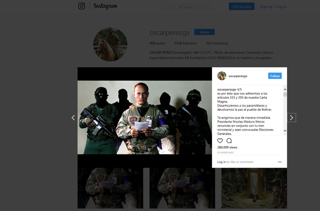 En cinco videos, divulgados en Instagram, Pérez exigía a Maduro su "renuncia inmediata". A la vez, fotos y videos del helicóptero en vuelo se volvían virales con rapidez en las redes sociales.