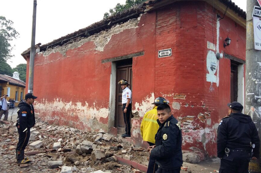 En La Antigua Guatemala, el temblor hizo que se desprendiera la cornisa de al menos una vivienda. En la capital, el sismo sorprendió a muchas personas que se dirigían a sus lugares de trabajo por concurridas vías.