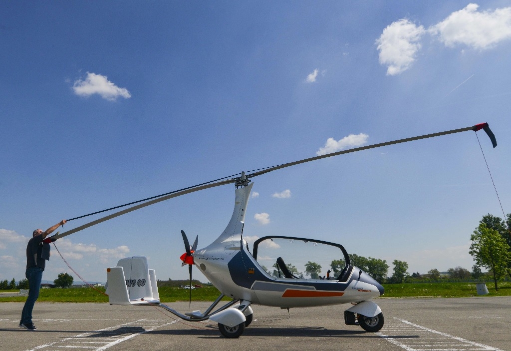 La compañía de Brezina compra giroplanos fabricados en Alemania y luego les añade un sistema para pasar de un motor de gasolina para volar a otro eléctrico para andar por carretera.