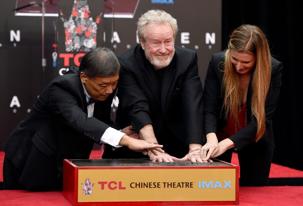 El veterano director británico de 79 años, que estrenó la primera exitosa película de la serie en 1979, inmortalizó en el cemento del Teatro Chino de Hollywood las huellas de sus manos y pies, a pocos días del estreno en Estados Unidos, el viernes, de [i]Alien: Covenant[/i]. La cinta se estrenó en España y varios países de América Latina la semana pasada.