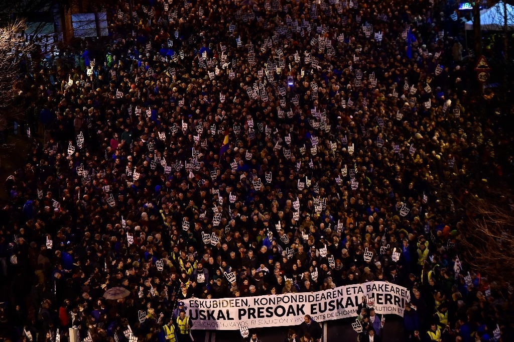 Los manifestantes también respaldaron a ETA y a los agentes políticos y sociales que han participado en el proceso de paz en al menos dos peticiones concretas del grupo armado: la reagrupación de los presos vascos a cárceles de la región, para que, los que no puedan ser liberados por cuestiones humanitarias o en función de la propia legislación española, cumplan el resto de su condena cerca de sus familias. Y, la segunda, que todos los presos enfermos gravemente sean liberados lo antes posible para que puedan vivir el resto de sus días fuera de prisión. Hasta el momento, tanto el gobierno francés como el español se niegan a ceder en estos puntos.