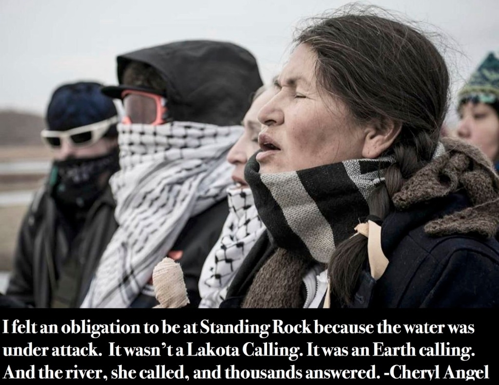 En conferencia de prensa, al lado del monolito del museo de Antropología, donde realizó una ceremonia indígena, Cheyl Angel explicó que el pueblo en Standing Rock lucha en contra del Dakota Access Pipeline, oleoducto del corporativo texano Energy Transfer Partners, con el que se atravesaría el territorio sagrado de las lakota, y penetrar el río Missouri y pasar por debajo del lago Oahe en la reserva sioux de Standing Rock.