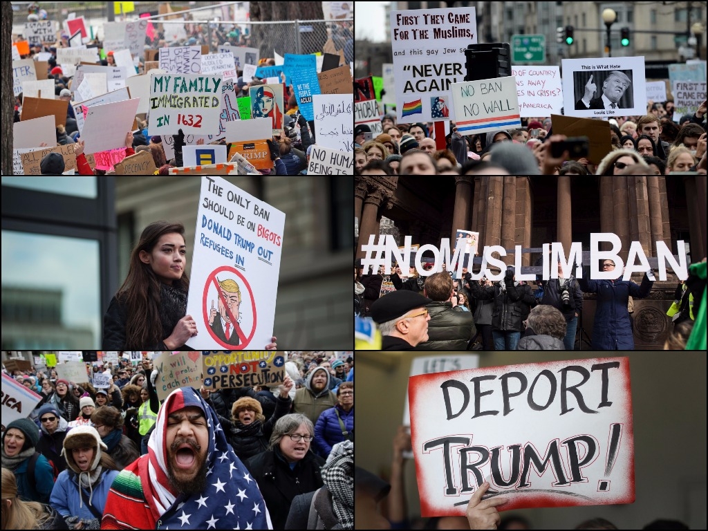 Hasta 60 mil visas para ciudadanos de siete países de mayoría musulmana –Irak, Irán, Siria, Yemen, Liba, Sudán y Somalia– fueron provisionalmente revocadas por el veto de viaje, lo cual provocó críticas y protestas en todo el mundo.