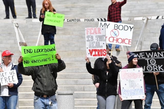 Entre los manifestantes se hallaban tres hermanos que son activistas conservadores a favor del porte de armas, y que han urgido a celebrar protestas contra la cuarentena a través del país.