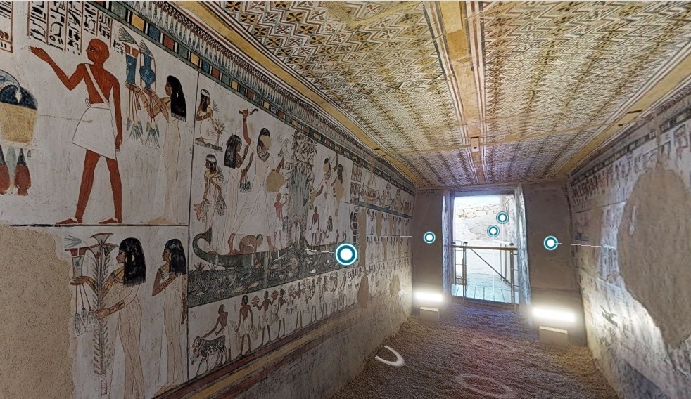 El sepulcro, perteneciente a la XVIII dinastía (1550 y 1295 a. C.), es "una de las tumbas más bellas y mejor preservadas", según el Ministerio de Turismo y Antigüedades egipcio, que ha lanzado por primera vez esta iniciativa bajo el lema "Vive Egipto desde casa. Quédate en casa. Mantente a salvo".