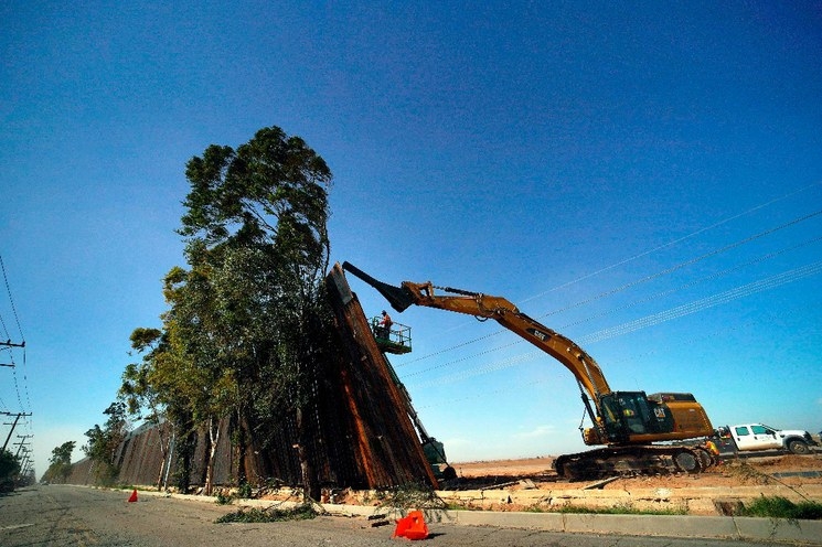 Vientos muy fuertes derribaron varios paneles de una nueva valla que se está instalando a lo largo de la frontera entre México y California, informó un periódico.