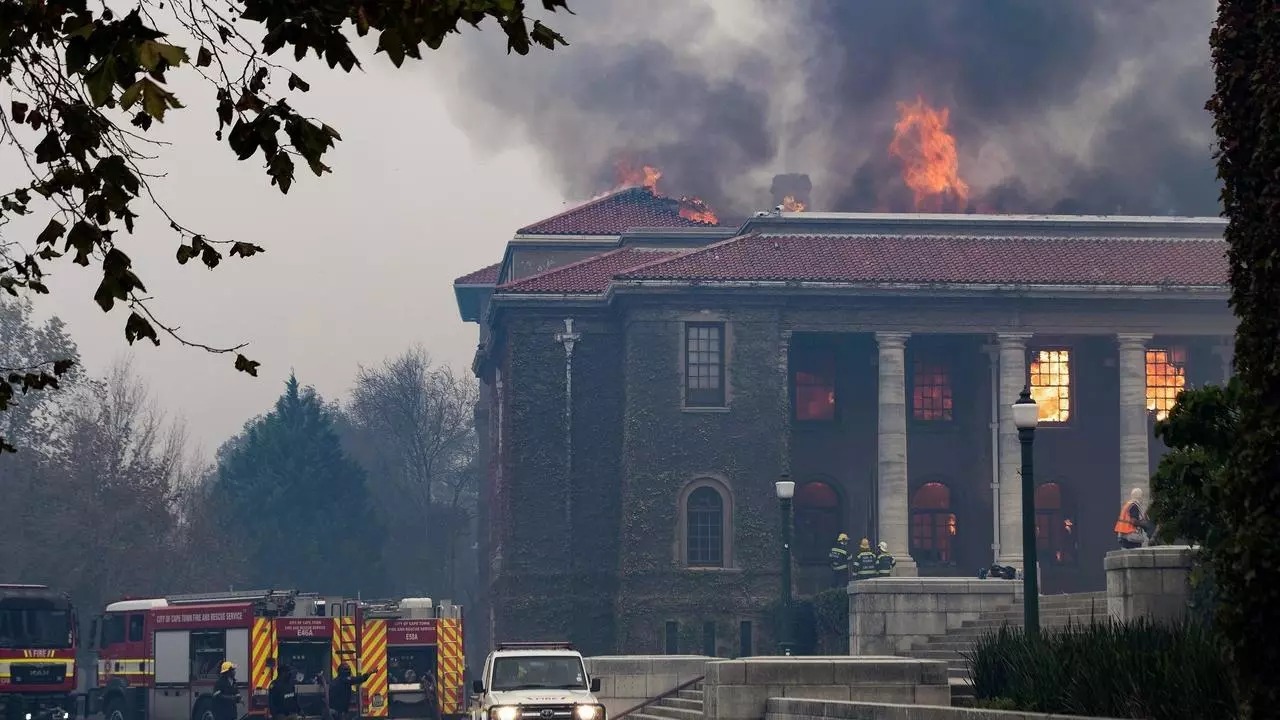 El diario South African comunicó que el fuego se extendió al campus universitario y a la biblioteca del centro docente fundado en 1829.