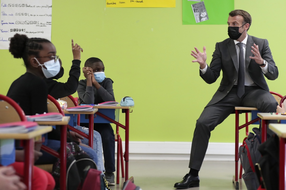 "¿Están contentos de volver físicamente?" al colegio, preguntó el jefe de Estado a los alumnos. "Sí", respondió la mayoría, aunque uno de ellos reconoció que prefería estudiar en casa "con la ayuda de Google y de (su) hermana".