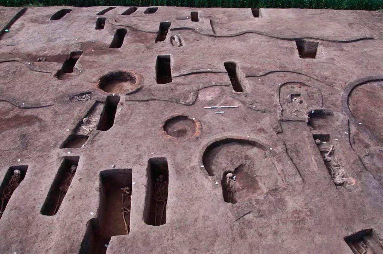 Se trata de enterramientos correspondientes a la civilización del Bajo Egipto conocida como Bhutto 1 y 2 (3 mil 100 años antes de Cristo), la Civilización de Naqada III (entre 3 mil 200 y 3 mil años antes de Cristo), y la segunda era de transición conocida como el periodo de los hicsos (que comenzó mil 700 años antes de Cristo).