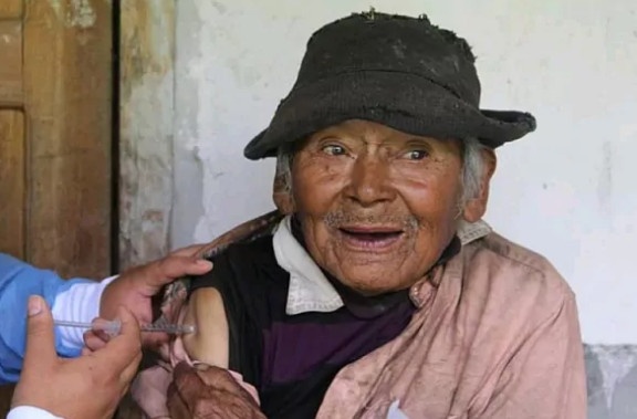 Nacido en 1900, Abad recibió la primera dosis de la vacuna en su casa del distrito de Chaglla, en la provincia de Pachitea de la región Huánuco.