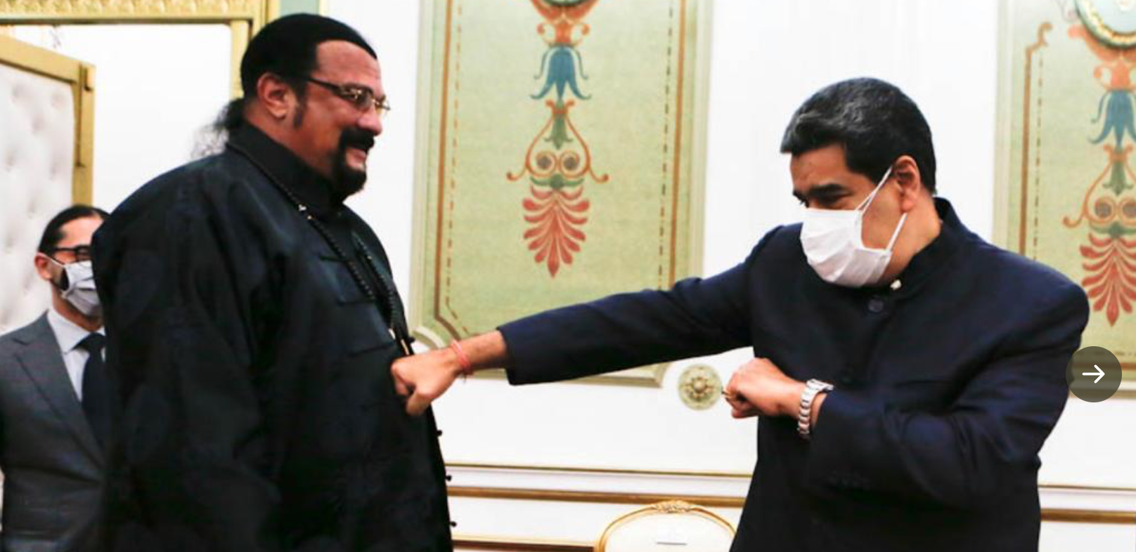 El actor estadunidense Steven Seagal, quien funge como represente especial del Ministerio de Relaciones Exteriores de Rusia, se encuentra en Venezuela, donde se reunió con el presidente Nicolás Maduro.