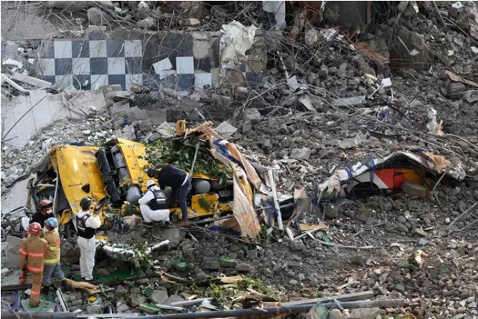 Las primeras conjeturas tras el derrumbe apuntaban a que dos vehículos habían quedado atrapados debajo de los escombros, aunque un vídeo ha confirmado que se trataría de un autobús, mientras continúan las operaciones de rescate.