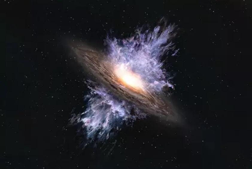 Observaciones con el telescopio ALMA, en Chile, han revelado un viento galáctico titánico impulsado por un agujero negro supermasivo hace 13 mil 100 millones de años.