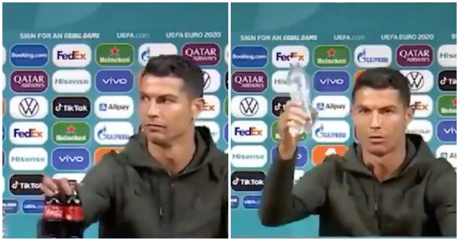 El futbolista portugués Cristiano Ronaldo rechazó un par de botellas de Coca-Cola durante una conferencia de prensa de la UEFA y promovió el consumo de agua, acción que le costó varios millones a la compañía.