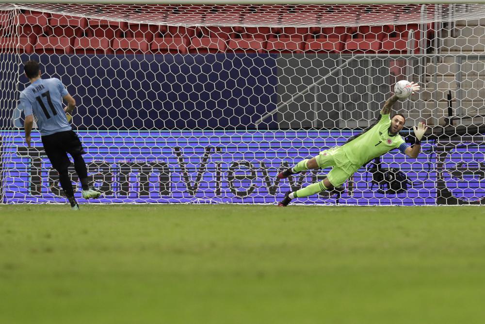 Ospina hizo paradas de los uruguayos José María Giménez y Matías Viña que prepararon un duelo de semifinales contra Argentina o Ecuador, que actualmente están jugando.