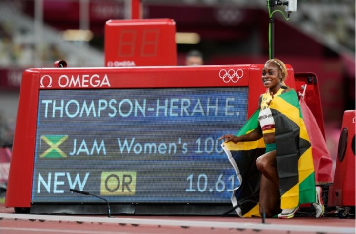 Elaine Thompson-Herah batió el sábado el récord olímpico establecido por Florence Griffith Joyner hace 33 años en los 100 metros femeninos, señalando hacia el marcador incluso antes de cruzar la meta con un registro de 10.61 segundos.