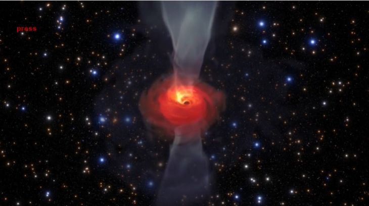 Los telescopios combinados muestran una instantánea en la que se observa cómo se separan los filamentos de polvo para dirigirse directamente al centro de la galaxia, donde circulan y giran en espiral alrededor del agujero negro hasta que son tragados por él.