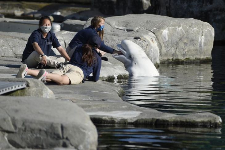 Las ballenas, cuyas edades oscilan entre los 7 y los 12 años, nacieron en cautiverio y dejaron un hábitat sobrepoblado con aproximadamente otras 50 ballenas para estar en el centro de importantes investigaciones pensadas para beneficiar a las belugas en la naturaleza, indicaron funcionarios del acuario.