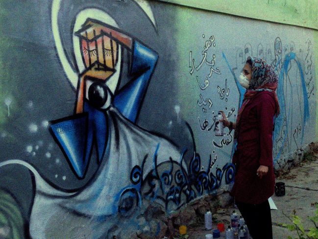 La artista callejera intenta retratar en sus obras la realidad de una mujer afgana en una sociedad dominada por los hombres.
