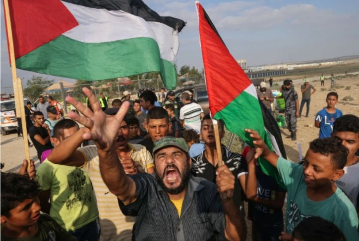 Hamas que gobierna Gaza convocó la protesta para conmemorar el incendio hace 52 años de la mezquita de Al-Aqsa, en Jerusalén.