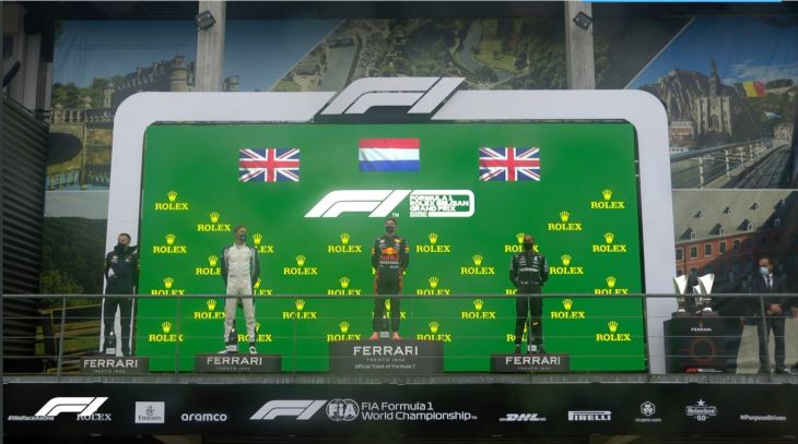 El holandés Max Verstappen (Red Bull) ganó este domingo el lluvioso y esperpéntico Gran Premio de Bélgica, el duodécimo del Mundial de Fórmula 1 y el más corto de la historia; que, tras varias interrupciones y aplazamientos, se disputó a sólo dos vueltas -en lugar de a las 44 previstas-, por detrás del coche de seguridad, valorándose sólo la mitad de los puntos.