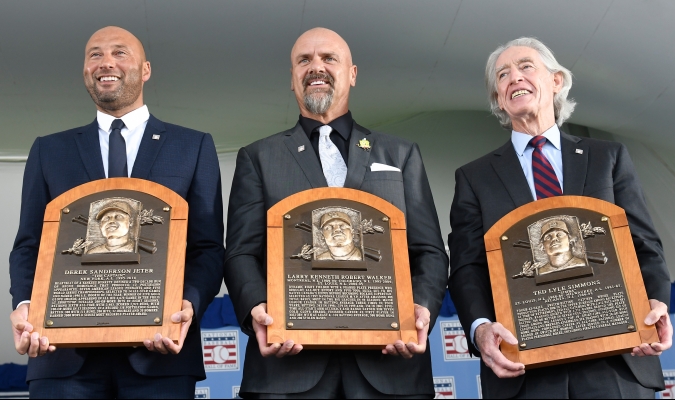 Jeter subió al escenario después de que se rindió honores a otros miembros de la generación de 2020: Ted Simmons, Larry Walker y el fallecido Marvin Miller