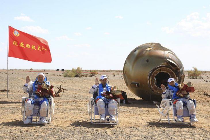 Nie Haisheng, Liu Boming y Tang Hongbo aterrizaron en la nave espacial Shenzhou-12 poco después de las 13:30 horas (0530 GMT) después de haberse desacoplado de la estación espacial el jueves por la mañana.