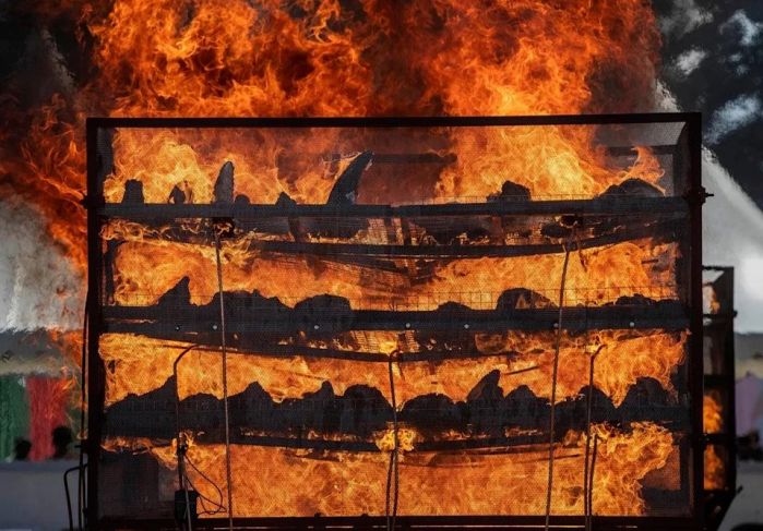 El funcionario decidió quemar los cuernos para crear conciencia sobre la necesidad de proteger a la especie y terminar con su caza furtiva, explicó M.K. Yadava, máximo responsable de vida salvaje de Assam.