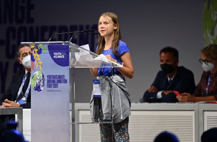 "No hay un planeta B, no hay planeta bla bla, bla bla bla, bla bla bla, economía verde bla bla, neutralidad de carbono para 2050 bla bla", enfatizó bajo los aplausos de 400 jóvenes de todo el mundo reunidos en Milán por iniciativa de la ONU, un mes antes de la crucial conferencia climática COP26.