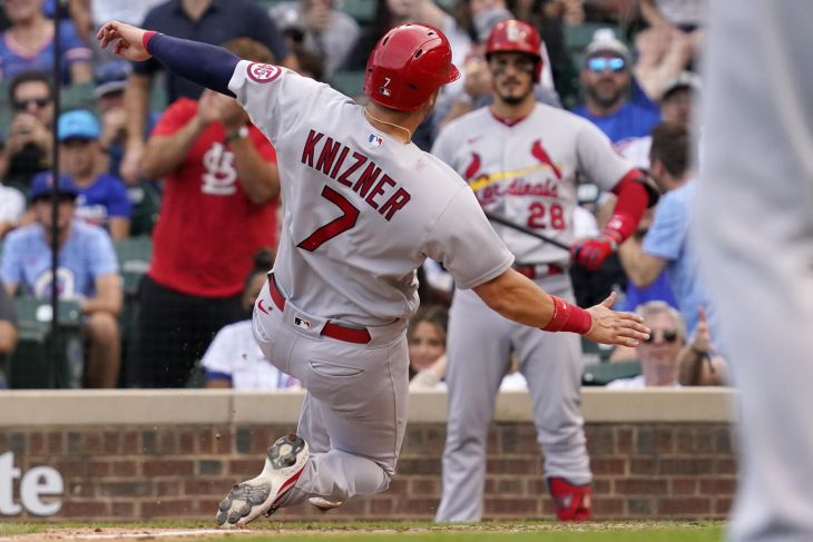 Knizner, suplente de Molina detrás del plato, abrió la entrada con base por bolas. Nootbaar, quien había entrado en la octava, le siguió con un perfecto toque de hit. Tommy Edman hizo avanzar a ambos con un sacrificio. Luego de que Goldschmidt recibiera un pasaporte intencional, Knizner anotó con un lanzamiento descontrolado y Nootbaar logró cruzar el plato con un batazo de O’Neill en dirección del lanzador.