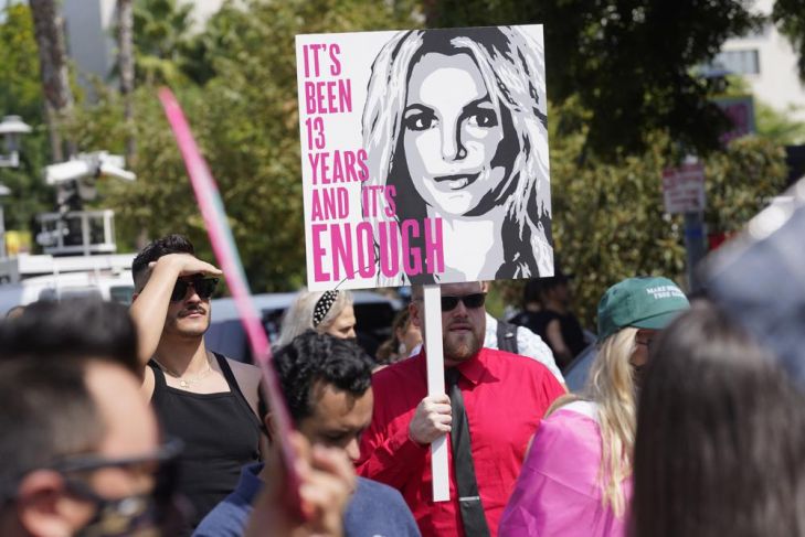 Horas antes de la audiencia, se cerró a los vehículos una calle principal fuera del juzgado, lo que permitió que unos 100 partidarios de Spears marcharan y organizaran una manifestación en la que gritaban "¡Oye, oye, ho, ho, la tutela tiene que desaparecer!" y otros cánticos a favor de Britney. A medida que la multitud crecía, los fanáticos cantaron los éxitos de Spears "Toxic" y "Baby One More Time", y los oradores describieron las tutelas abusivas que habían afectado a sus familias.