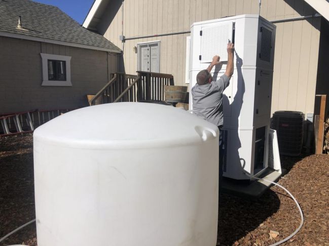 Don Johnson, de Benicia, California, dijo que compró la máquina más pequeña, que parece una torre de AC, con la esperanza de generar agua para mantener su jardín. Pero descubrió que produce una cantidad más que suficiente para su jardín y su vivienda.