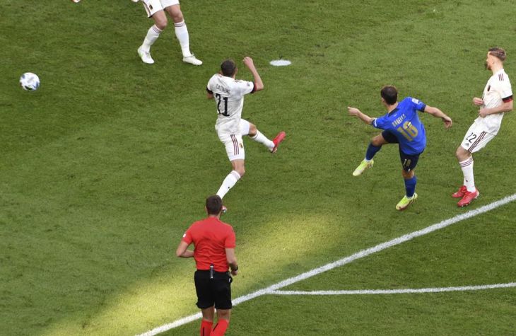 Nicolò Barella abrió el marcador al inicio del segundo tiempo con tremendo disparo, tras tiro de esquina, y Domenico Berardi amplió la ventaja de Italia con un penal a los 65 minutos.