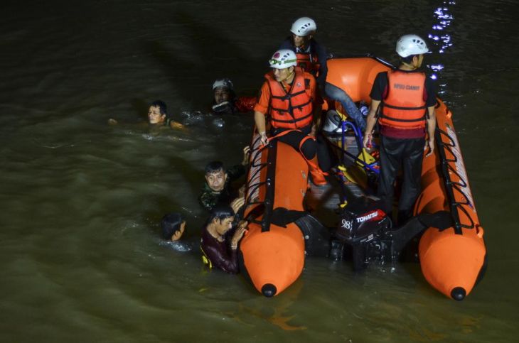 Funcionarios locales dijeron que 150 estudiantes de una escuela secundaria islámica participaban en la limpieza el viernes a lo largo de las orillas del río Cileueur cuando 21 de ellos se deslizaron al agua.