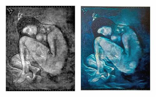 El equipo “resucitó” la representación de Pablo Picasso de una mujer desnuda agachada, escondida durante más de un siglo debajo de La comida del ciego, una de sus obras maestras del periodo azul.