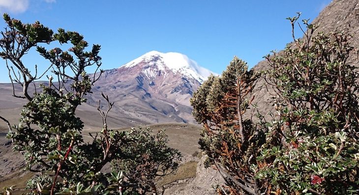 El Chimborazo, un volcán potencialmente activo con nieve perpetua y ubicado a 130 kilómetros al sur de Quito, tiene 6 mil 293 metros. Es el más alto de Ecuador y uno de los principales del mundo.