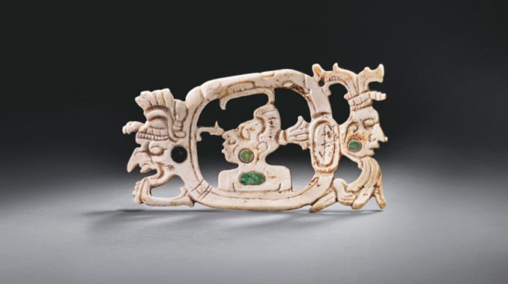 La segunda pieza con un precio inicial más alto es un pendiente olmeca, de unos 16 centímetros de largo, por el que esperan recibir entre 150 mil y 250 mil euros. Ubican la pieza como parte de una colección privada europea “probablemente desde los años 50”.