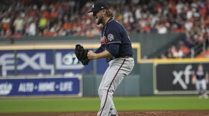 A.J. Minter, relevista de Atlanta, batió un puño en el aire cuando descendió del montículo tras recetar una anestesia que puso fin a una entrada en el primer juego de la Serie Mundial. Era apenas el tercer episodio de lo que sería otra larga noche de postemporada para el bulpén de los Bravos. Y fue otro triunfo conseguido por esos bomberos.