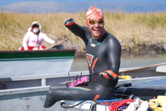 Nadie antes se había atrevido a nadar la distancia que separa Copacabana (Bolivia) de las islas flotantes de los Uros frente a la bahía de Puno (Perú), en un recorrido por gélidas aguas a 3 mil 800 metros sobre el nivel del mar, y menos aún en total autonomía, sin recibir ayudas durante la travesía.