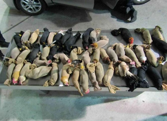 Agentes fronterizos interceptaron 47 gallos de pelea y gallinas en el vehículo de un ciudadano estadunidense cuando intentaba ingresar a Estados Unidos desde México en Laredo (Texas), informó este lunes la Oficina de Aduanas y Protección Fronteriza (CBP).