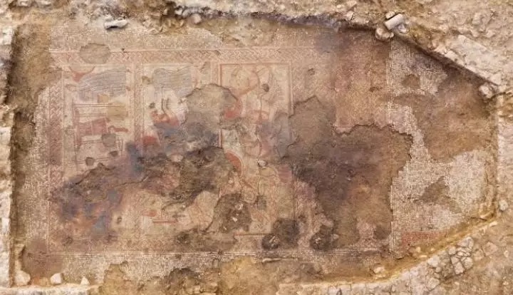 Un espléndido mosaico romano, único en su clase en Gran Bretaña, fue excavado por arqueólogos de la Universidad de Leicester en terrenos de una granja en Rutland, Inglaterra.