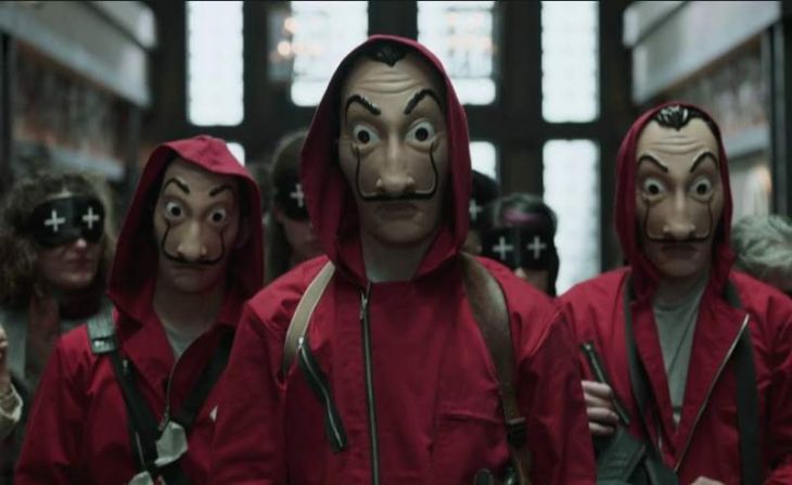 La casa de papel no sería lo mismo sin su iconografía. Un mono rojo, color símbolo de la rebeldía, la pasión y la revolución. Una careta que recuerda a la de V for Vendetta de Guy Fawkes, que adoptaron los activistas de Anonymous, pero nacionalizada con el rostro de Salvador Dalí, el símbolo de la resistencia y del surrealismo. Y una canción himno, el Bella Ciao, que propuso el guionista y coproductor ejecutivo, Javier Gómez Santander. El himno de los partisanos italianos que animaba a la resistencia antifascista en la Segunda Guerra Mundial.