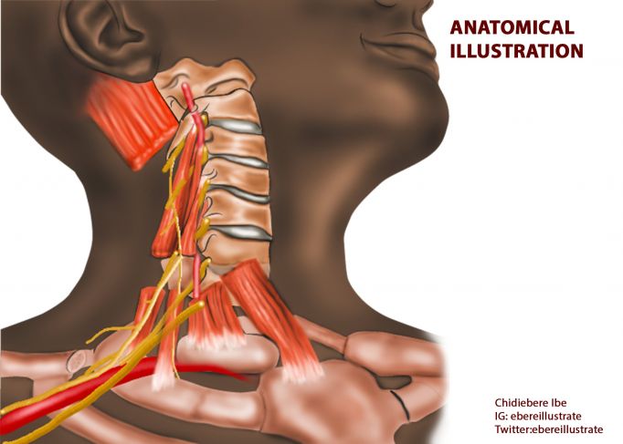 Chidiebere Ibe es de origen nigeriano y también se dedica a la ilustración médica. Sus trabajos únicamente incluyen a personas de piel negra con el objetivo de representar a las personas africanas típicas.