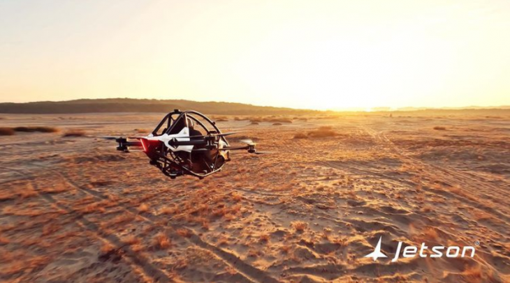 La empresa Jetson informó que este primer vehículo tiene capacidad para una persona y toma aproximadamente cinco minutos aprender a volarlo; tiene sensores Lidar que controlan el seguimiento del terreno y la evitación de obstáculos.