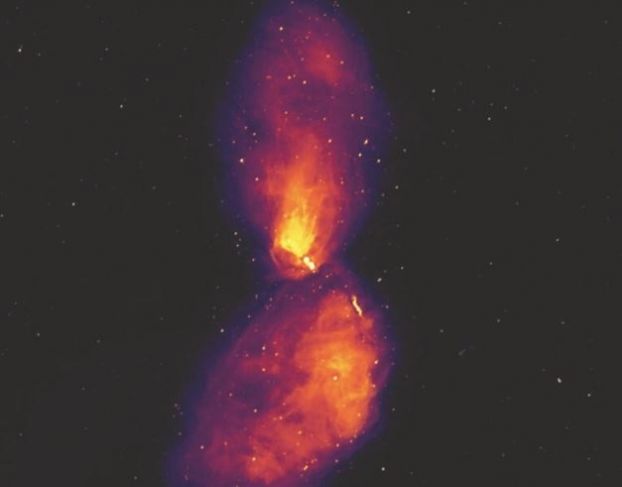 “Estas ondas de radio provienen del material que es absorbido por el agujero negro supermasivo en el medio de la galaxia. Forma un disco alrededor de éste, y a medida que la materia se desgarra acercándose a él, se forman poderosos chorros a ambos lados del disco, expulsando la mayor parte del material hacia el espacio, a distancias de probablemente más de un millón de años luz.