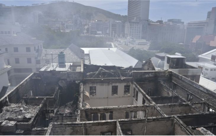 Lee: Incendio destruye por completo la Asamblea Nacional de Sudáfrica