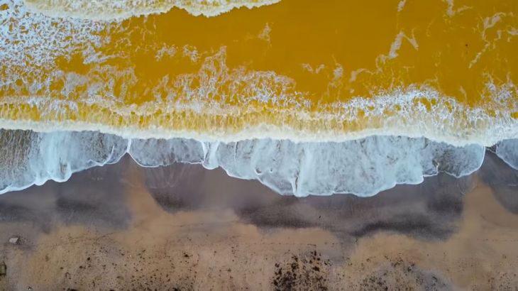 Un extraño fenómeno tiñe de amarillo las aguas del mar Negro que se encuentran frente a la costa de Crimea. La grabación, que puedes ver aquí, de las playas de Evpatoria a vuelo de pájaro dejó unas imágenes sorprendentes.