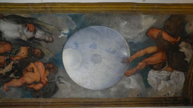 La obra de Caravaggio (Michelangelo Merisi, 1571-1610), considerado el maestro del claroscuro, que data de 1597, se encuentra en el primer piso de la residencia y representa a Júpiter, Plutón y Neptuno en medio a un globo terrestre rodeado por los signos del Zodíaco.